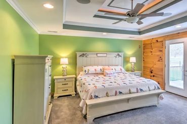 The Bourbon Trail Wilderness Lodge sits on 22 acres with access to a stocked pond, fire pit and maintained walking trails in the woods. Relax in the great room to enjoy the scenic environment, gather to eat in the Florida porch with a beautiful view of the property, or have fun in the basement game room with pool table, dart board and corn hole off of the back patio. Located within walking distance of Four Roses Bottling Facility, 5 minutes from Jim Beam Distillery and Bernheim Forest, 15 minutes from Bardstown, and 30 minutes from the airport and attractions in Louisville.